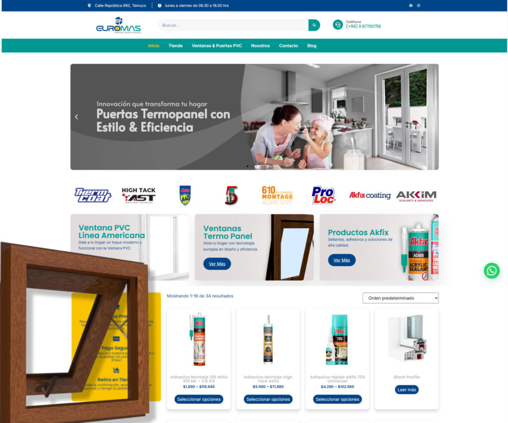 - Integración con redes sociales y WhatsApp